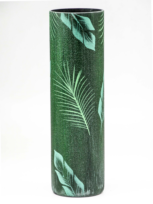 Glass vase for flowers | Cylinder Vase | Interior Design | Home Decor | Large Floor Vase 16 inch | Tropical leaves decorated vase