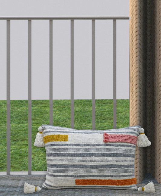 Handwoven Corner Tassels Decorative Pillow, 14''X20''