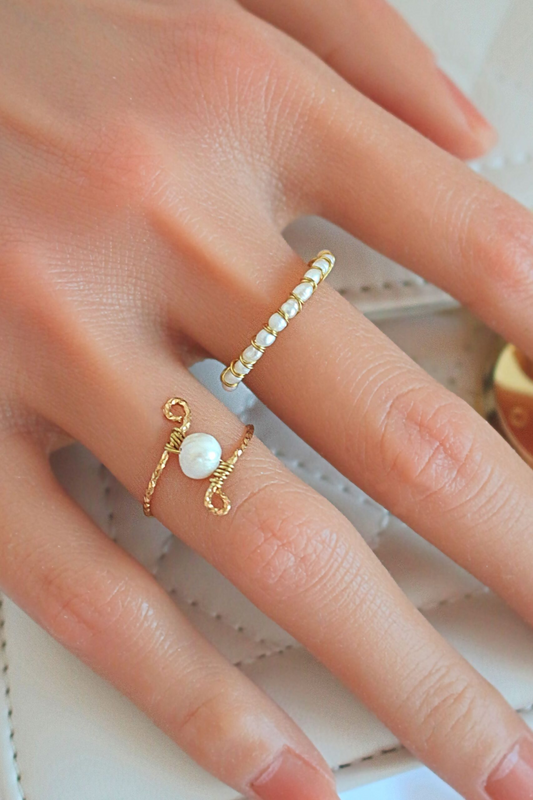 "Mademoiselle" | Solitaire & Band Freshwater Pearls Hand Wired Rings Bundle (2 Items)