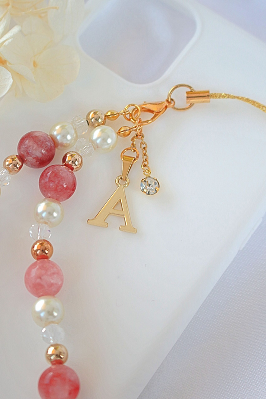 "Luck & Love" | Strawberry Quartz & Custom Initial Charm Phone Lanyard