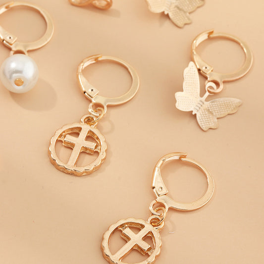 Multi-Element Lightning Cross Small Ear Ring Earings Set