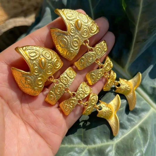 Retro Golden Hollow Fishbone Eardrops Earrings