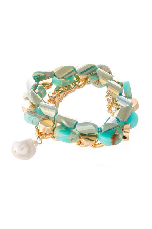 Semi Precious Stone and Pearl Bracelet