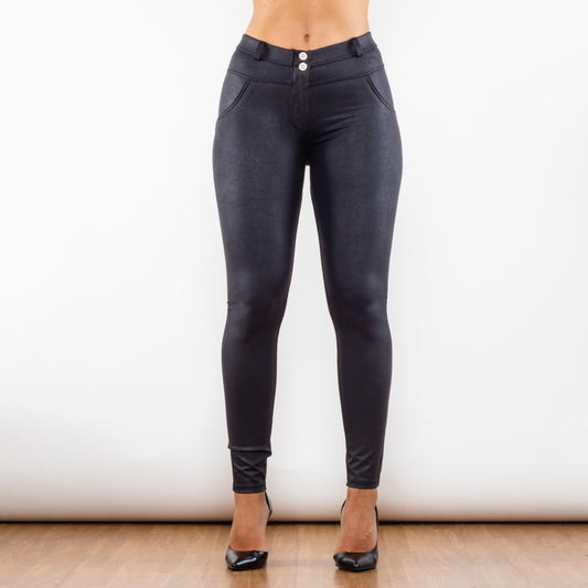 Shascullfites melody Four-way stretchable super tight leggings blue faux leather leggings hip lifting