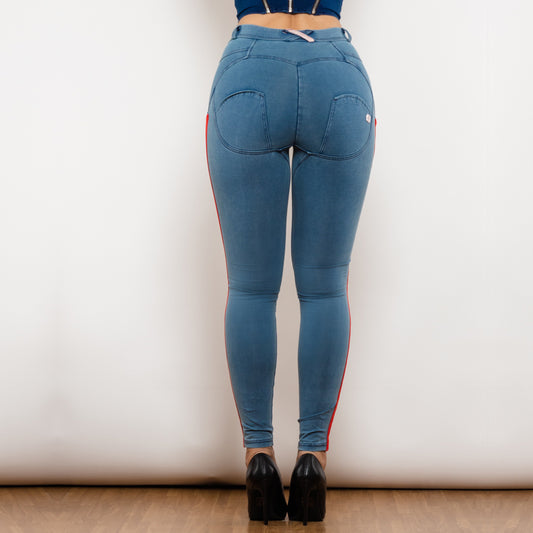 Shascullfites Melody Side Striped Middle Waist Skinny Jeans Bum Lift Leggings Woman Sexy Push Up Jeans Denim Pencil Pants