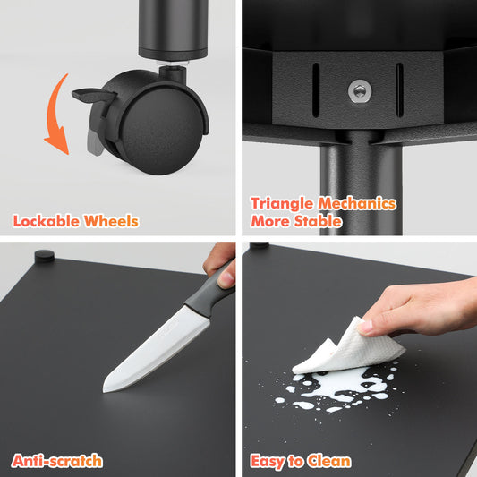 Ambitelligence Kitchen Bakers Rack, Heavy Duty Bakers Rack 4-Tier Free Standing Kitchen Storage Shelf Rack Hight Adjustable With Wheels & Feet, Industrial Metal Microwave Oven Stand Black