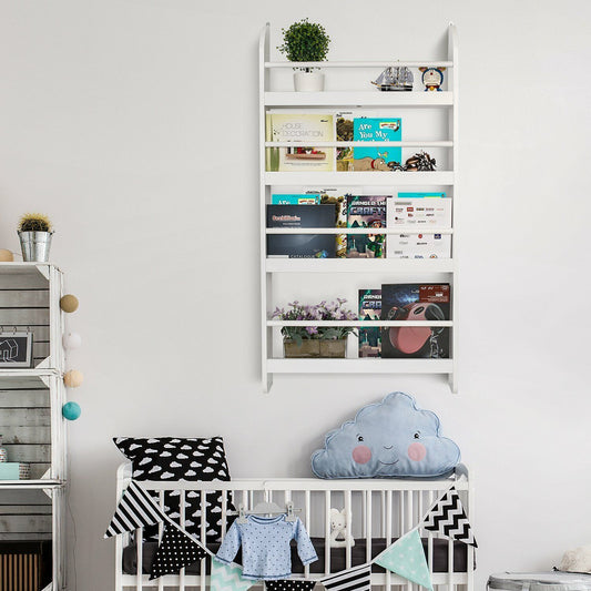 White Children Bookcase Unit Shelving Wooden Rack Kids Display Bookshelf Storage