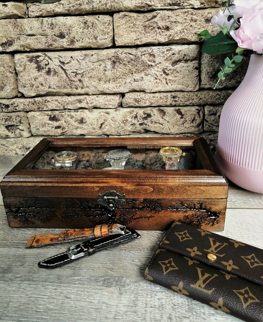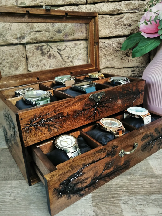 Wood Watch Box, Lichtenberg Figure, Watchbox for Men, Watch Organizer, Unique Gift Father's Day