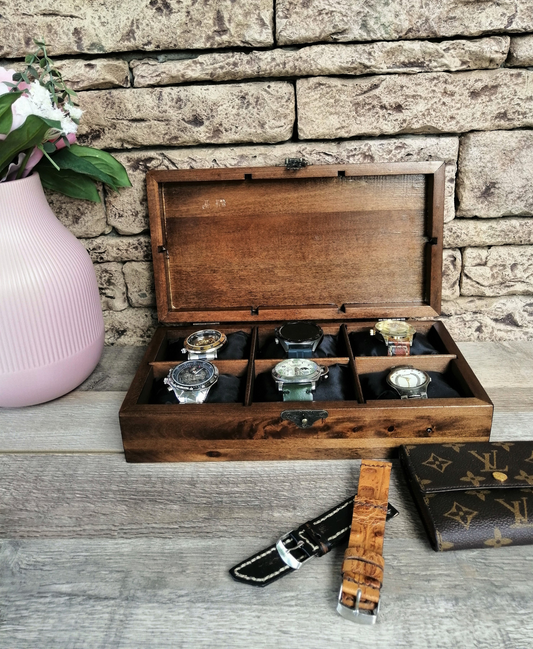 Wood Watch Box Handmade, Watch Organizer 4 Compartments, Birthday Husband Gift