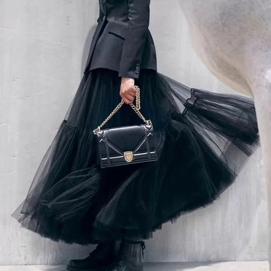Black Mesh Maxi Hem Skirt, Maxi Dress, Mid-length Skirt, Design Sense Gauze Skirt, Big Swing Skirt, Spring Clothing, Womens Clothing