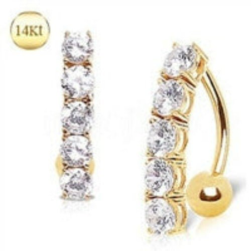 14Kt Yellow Gold Navel Ring with Top Down 5 Round Gems