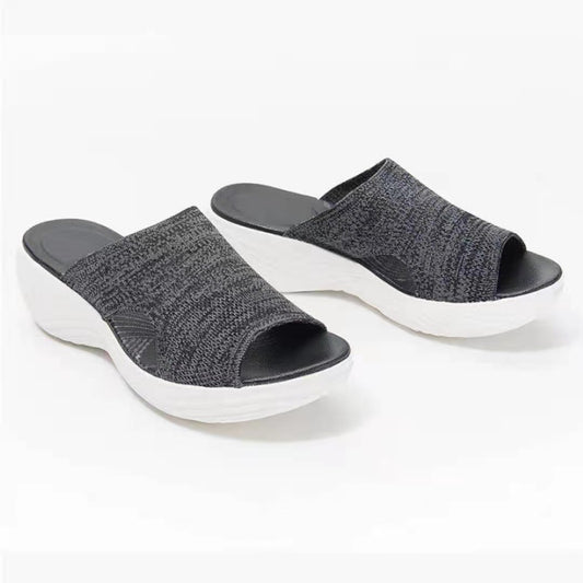 Casual Flying Woven Upper Polyurethane Platform Sandals And Slippers Women