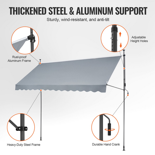 VEVOR 178x47" Patio Awning Retractable Awning Sunshade Shelter with Crank Handle