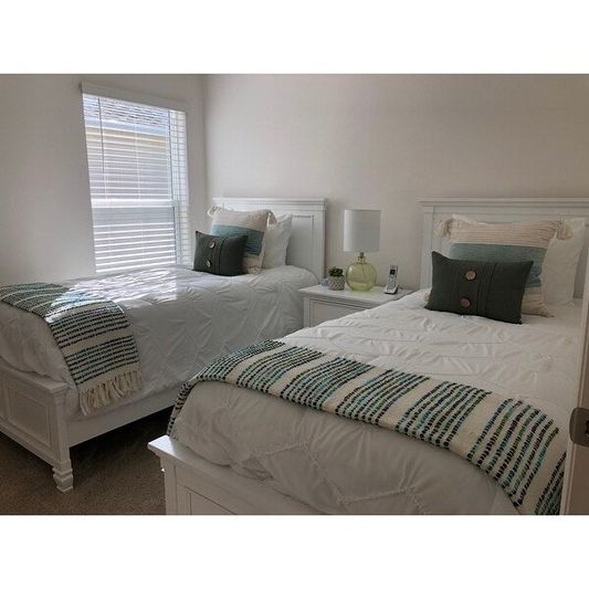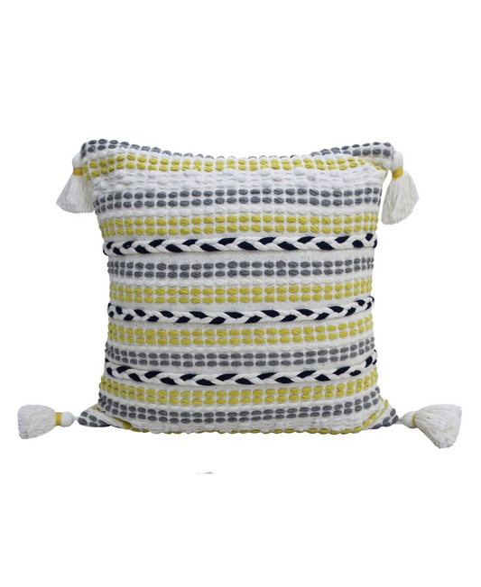 Designer Striped Pillow with Mini Poms and Tassels 20"x20"