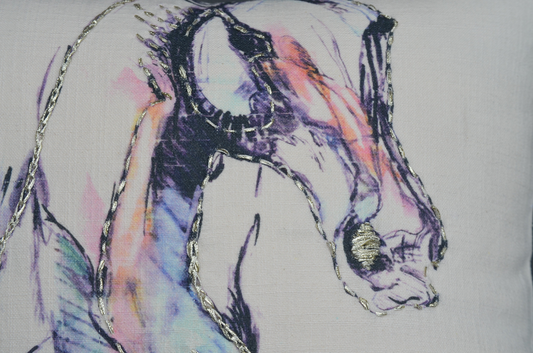 White Decorative Pillow 18"x18" Animal Print and Embroidery