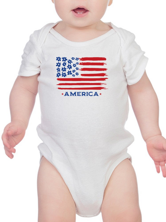 America's Flag And Flowers Bodysuit Baby's -SmartPrintsInk Designs