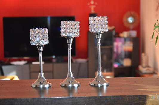 Vibhsa Crystal Aluminium Candle Holder Set of 3