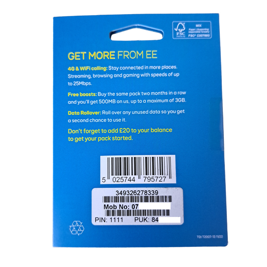 EE Pay As You Go Sim Card - £20 Subscription Pack