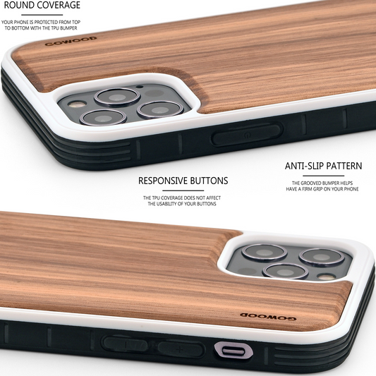 iPhone 12 and iPhone 12 Pro wood case walnut backside with TPU bumper and white PC