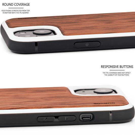 iPhone 13 walnut wood case with TPU bumper and white PC