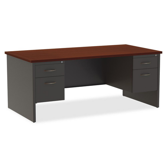 Lorell Mahogany Laminate/Charcoal Modular Desk Series Pedestal Desk - 2-Drawer - 72" x 36" , 1.1" Top - 2 x Box, File Drawer(s) - Double Pedestal - Material: Steel - Finish: Mahogany Laminate, Charcoa