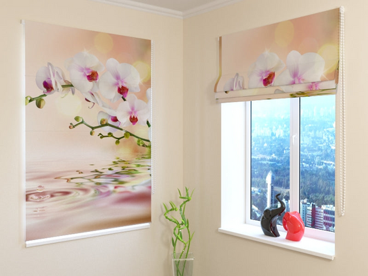 Set di 4 Tende a Pannello Orchidea e Albero