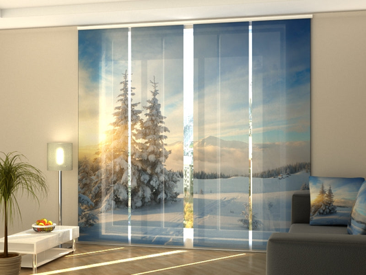 Set di 4 Tende a Pannello Paesaggio Della Foresta Natalizia