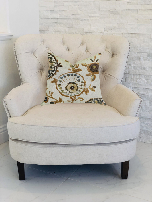 Dahlia Jardin Floral Brown and Green Luxury Throw Pilow
