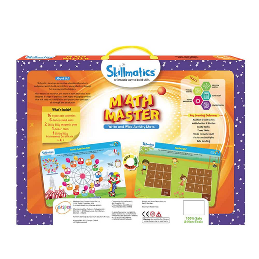Skillmatics Educational Game : Math Master | Reusable Activity Mats with 2 Dry Erase Markers | Gifts & Learning Tools for Ages 6-9