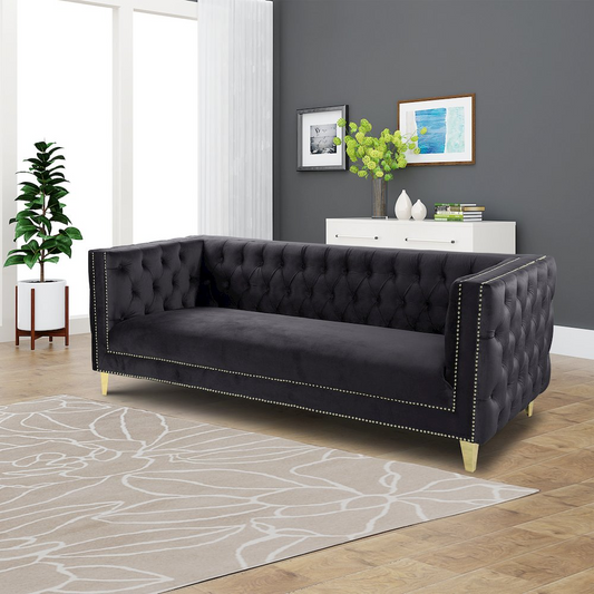 Luxe Velvet Sofa with Gold Legs, Fully Assembled.