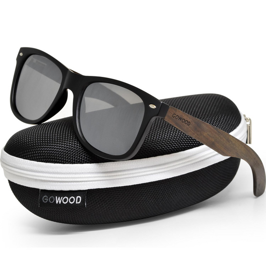 Ebony wood classic style sunglasses with black polarized lenses