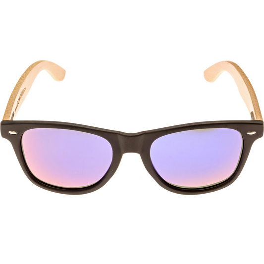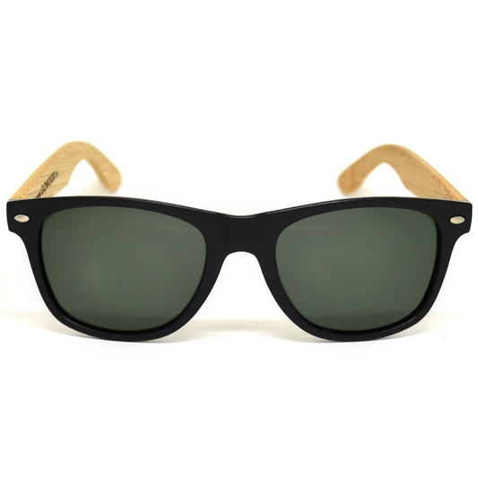 Bamboo wood classic style sunglasses with black polarized lenses
