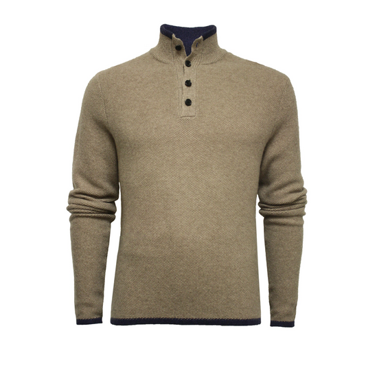 Camel Cashmere Sweater Button Neck Kandui in small Seed Stitch
