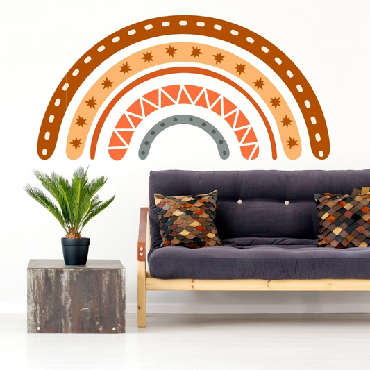 Boho Rainbow Wall Decal Decor - Bohemian Big Vinyl Wallpaper Sticker For Bedroom Or Nursery Kid Room - Large Pastel Art Girl Baby Mural