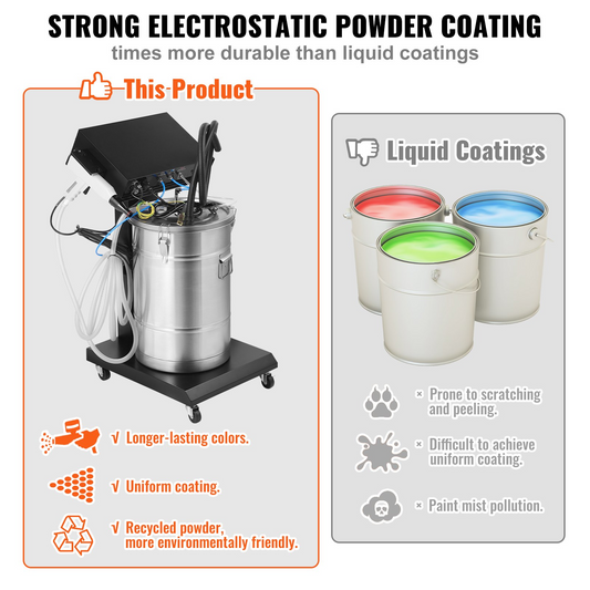 VEVOR Powder Coating System, 40 W 100KV Electrostatic Output Powder Coating Kit with 50L Powder Hopper, 450g Per Minute Powder Coating Machine with Spray Gun and Trolley Base, for Indoor and Outdoor
