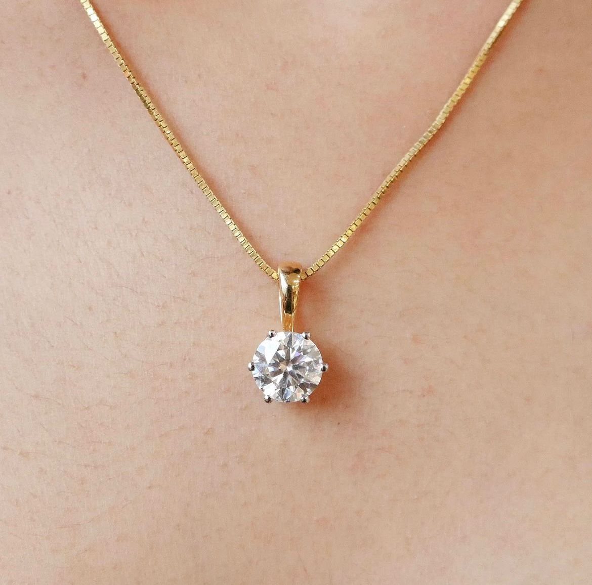 Add glamor to everyday looks or stunningly accessorize special occasions with our 14k Yellow Gold Chain with 1 ct Moissanite Lab Grown Stone.