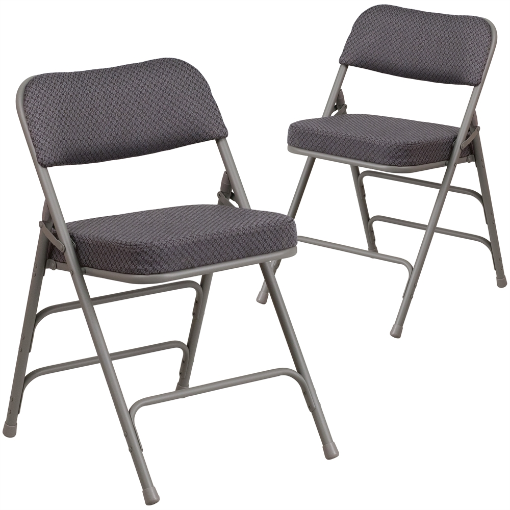 2 Pk. HERCULES Series Premium Curved Triple Braced & Double Hinged Gray Fabric Metal Folding Chair