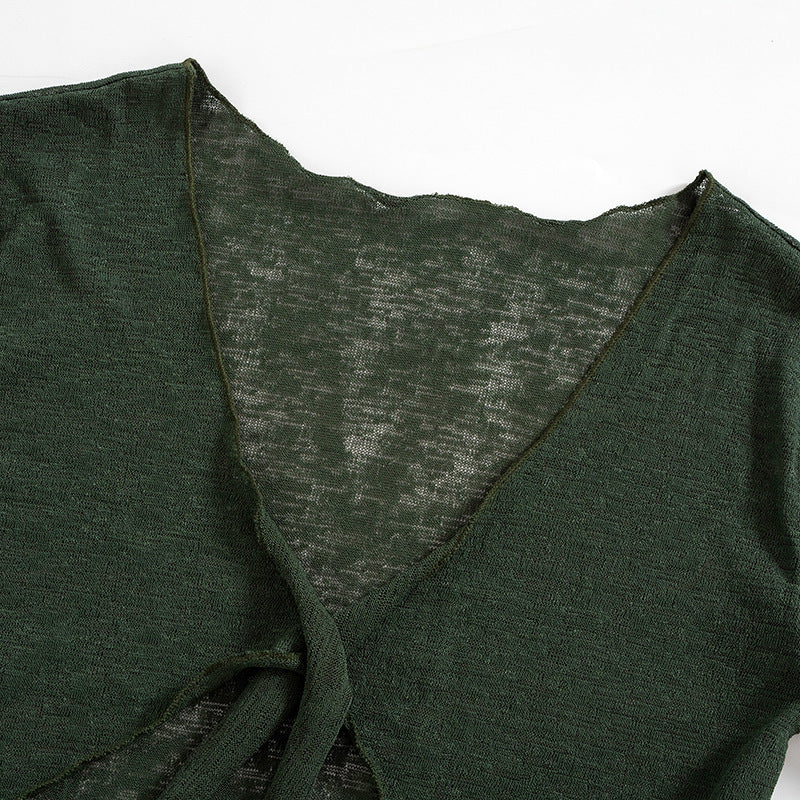 2023 Mesh See-through Strap Long-sleeved Wrap Top And Skirt