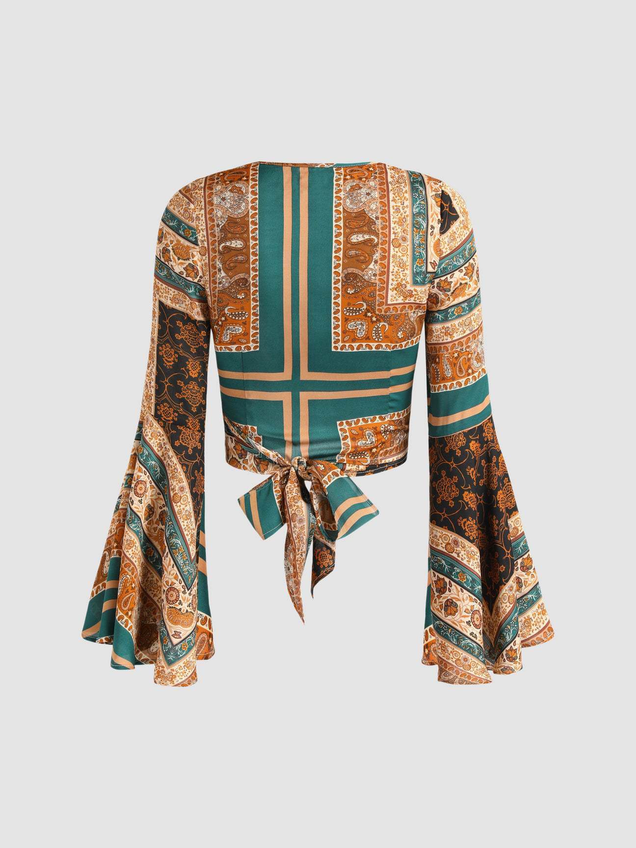 2023 New Long Sleeve Printed Trumpet Sleeve Top Shirt