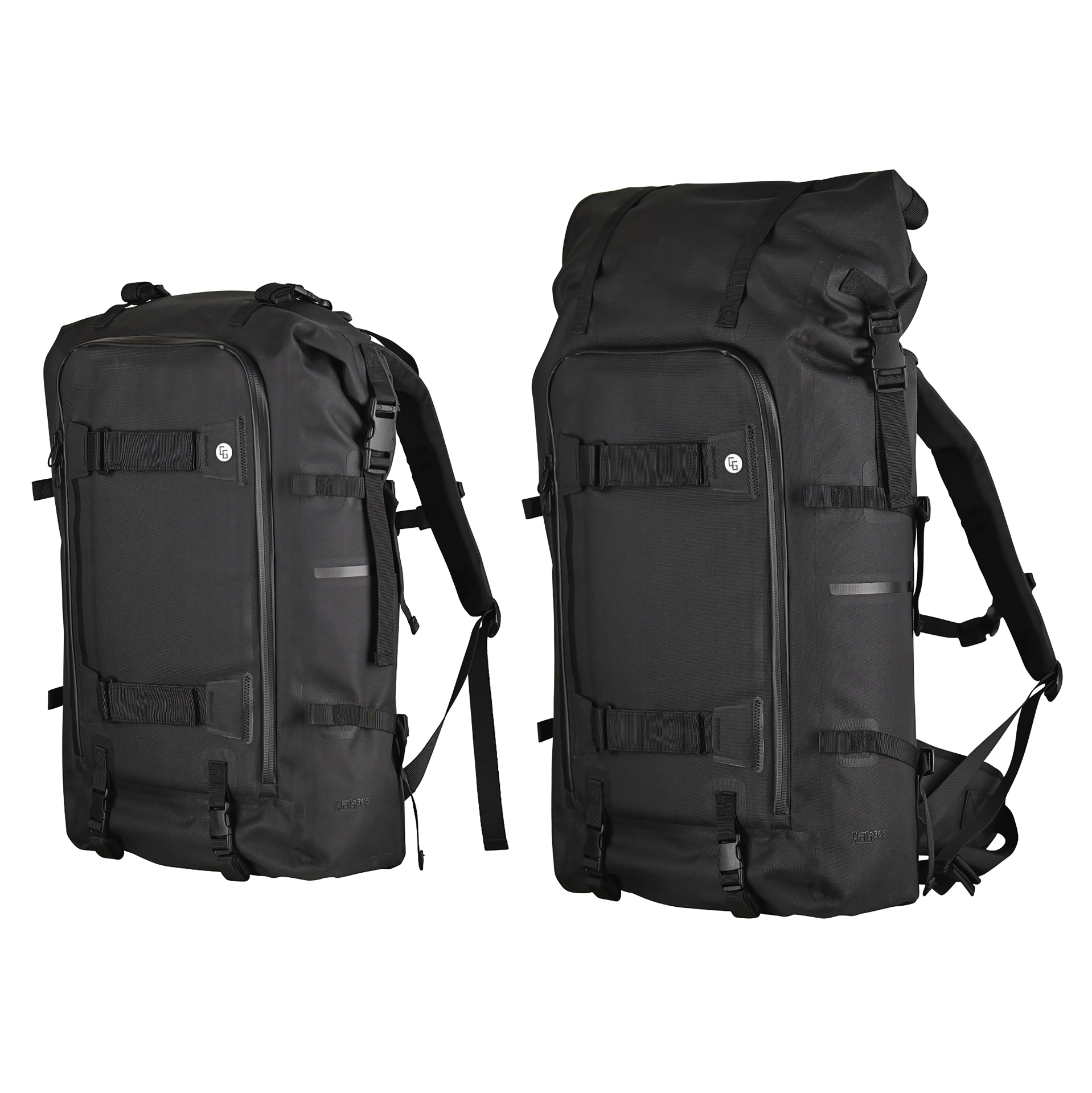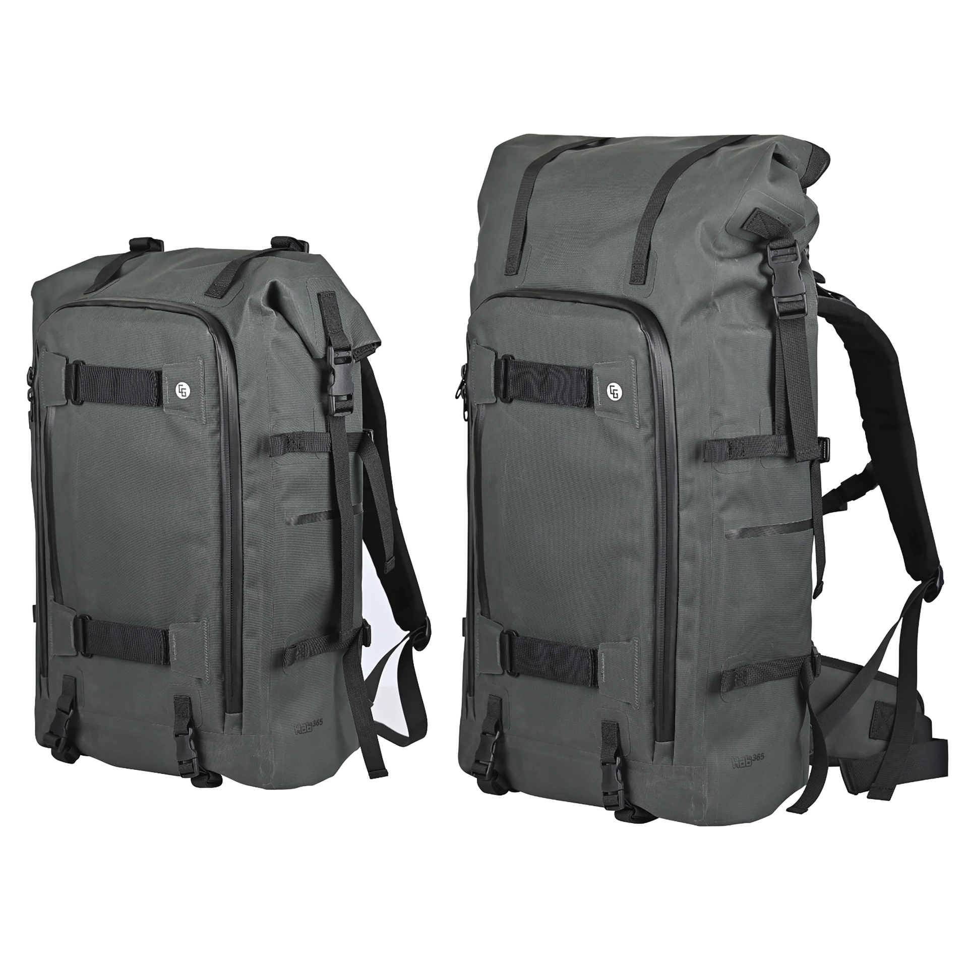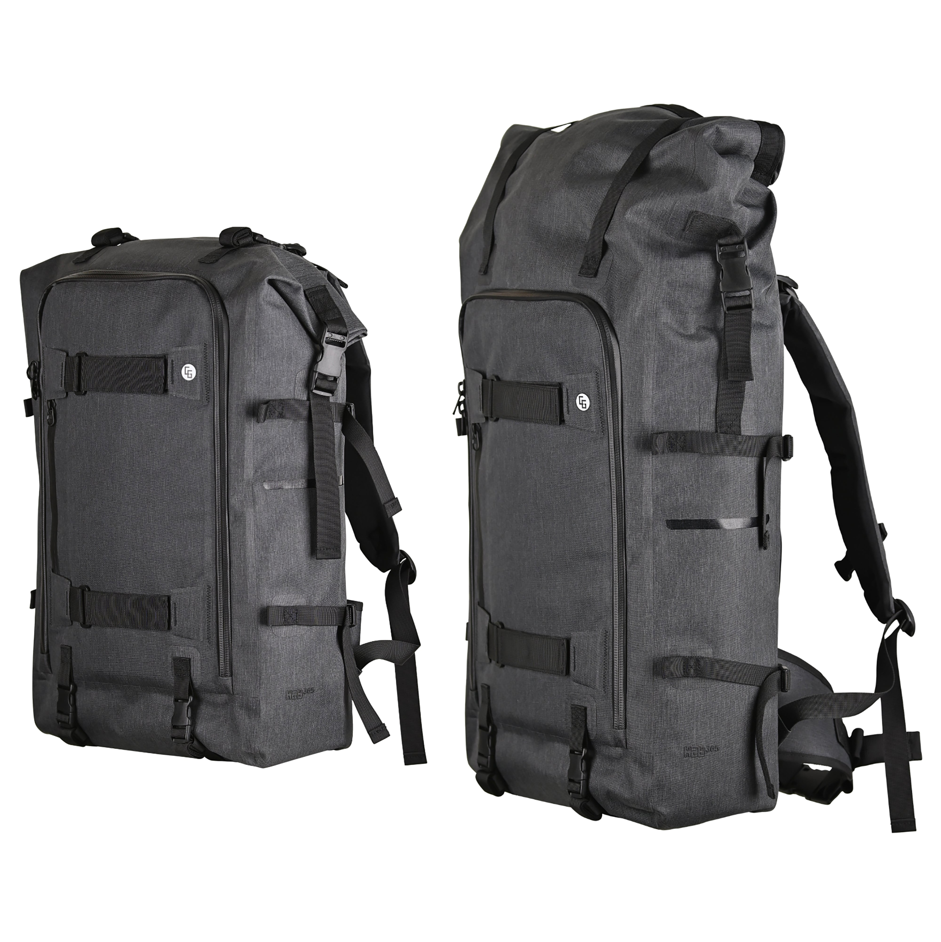 The 365 can flatten down to a compressed size of 26” long x 18” wide x 2” depth, with the top rolled for the 30 liter size.