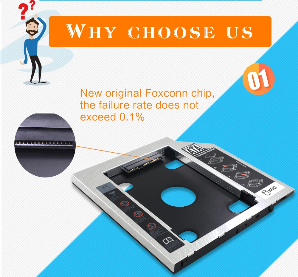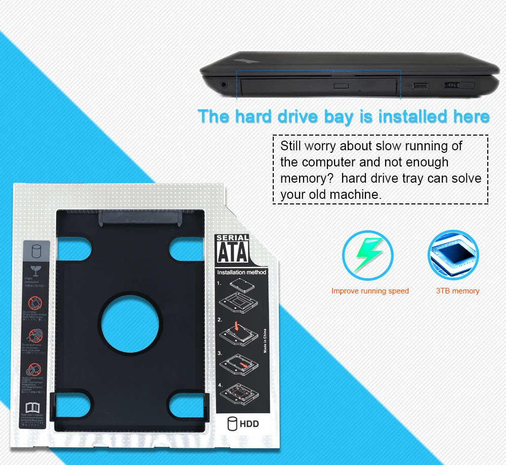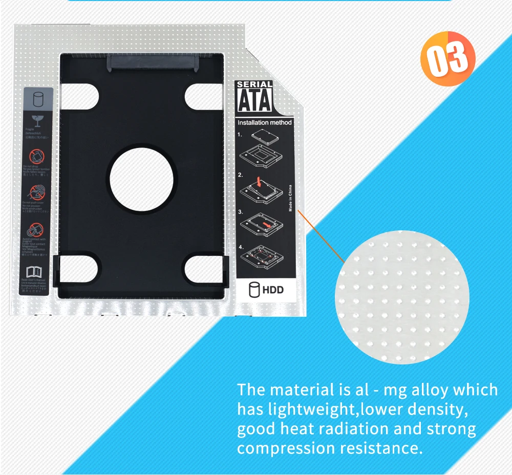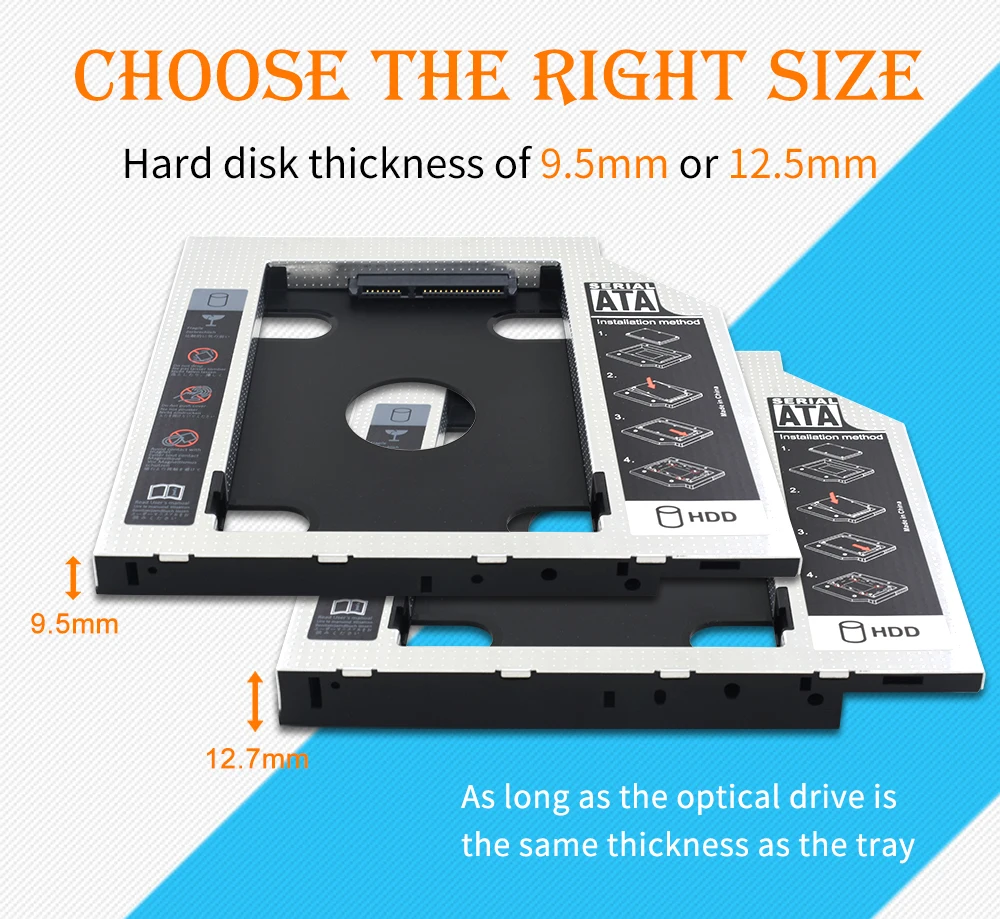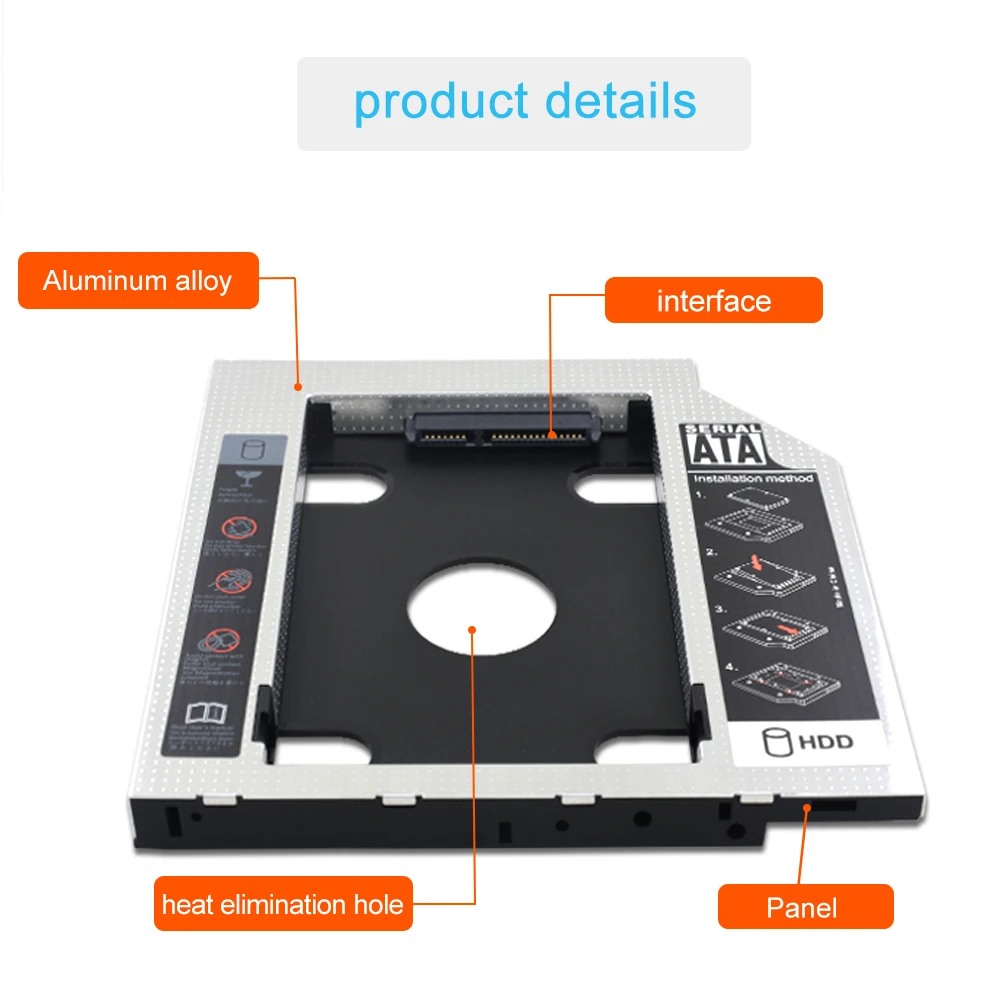 9.5 12.7Mm HDD Caddy Aluminum Universa SATA 3.0 2.5" SSD CD DVD to HDD Case Optibay Enclosure CD-ROM ODD