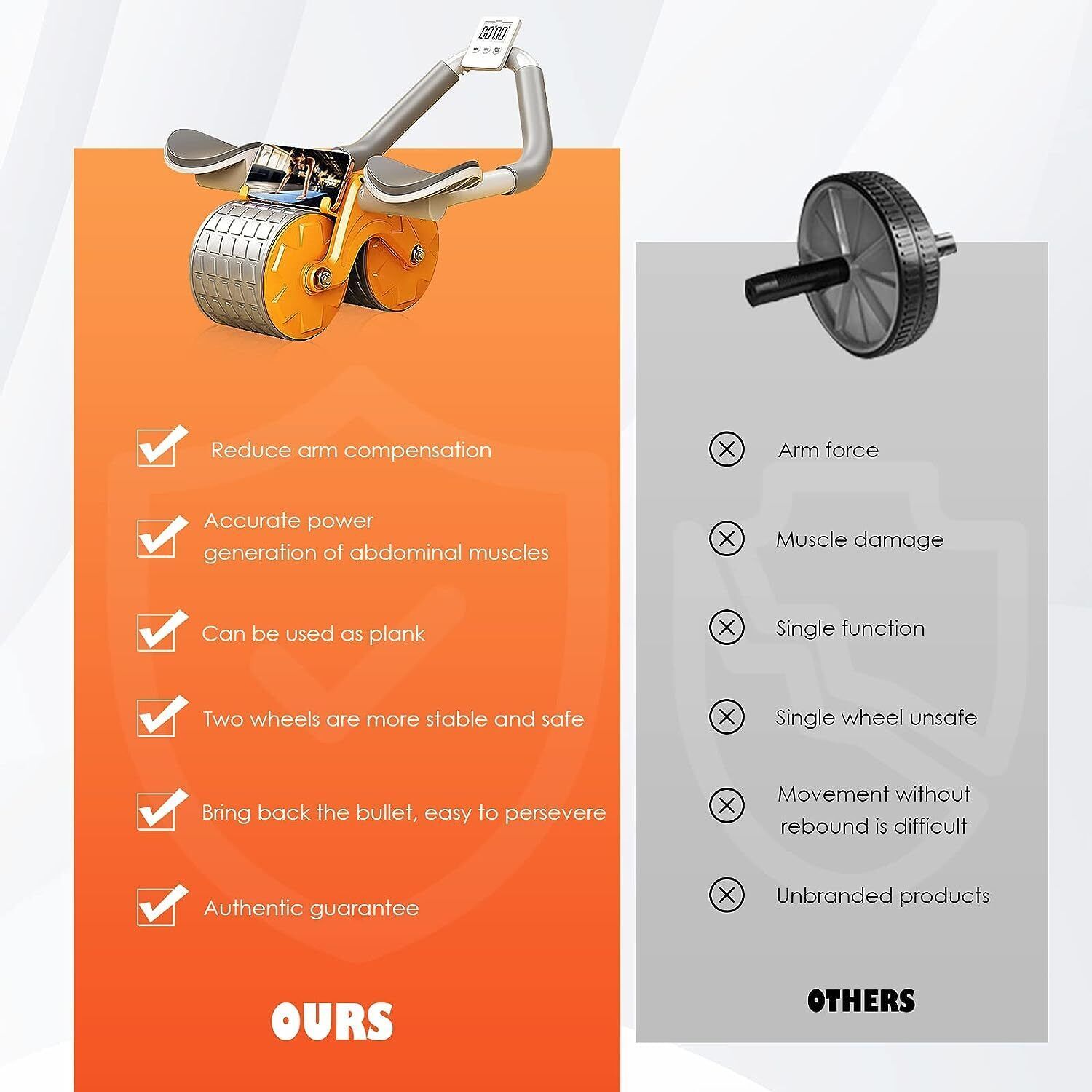 AUTOMATIC REBOUND DESIGN: our ab roller with automatic rebound technology, automatic steel rebound intelligent auxiliary brake, built-in brake system, steel rebound more smoothly.