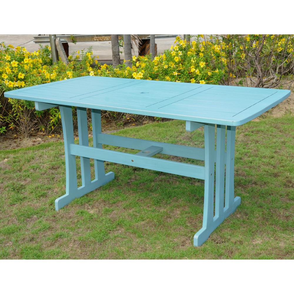This stylish outdoor table is the perfect addition to your patio. Made from durable Acacia wood it is weather-resistant to ensure longevity. Has a hole in center of table for an umbrella.