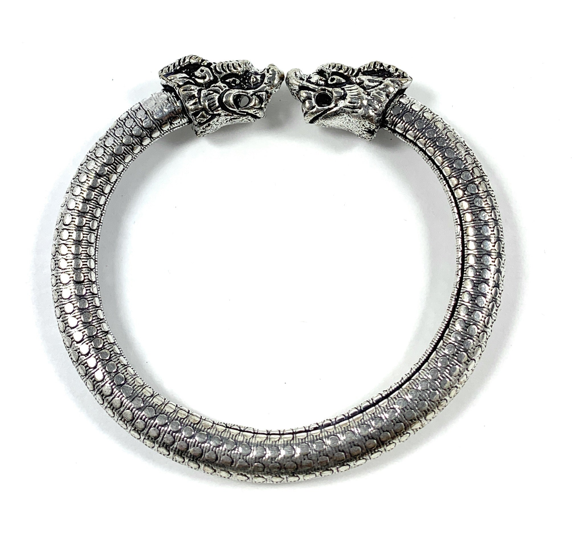 Antique Norse Bracelet With Lion Heads & Dotted Pattern