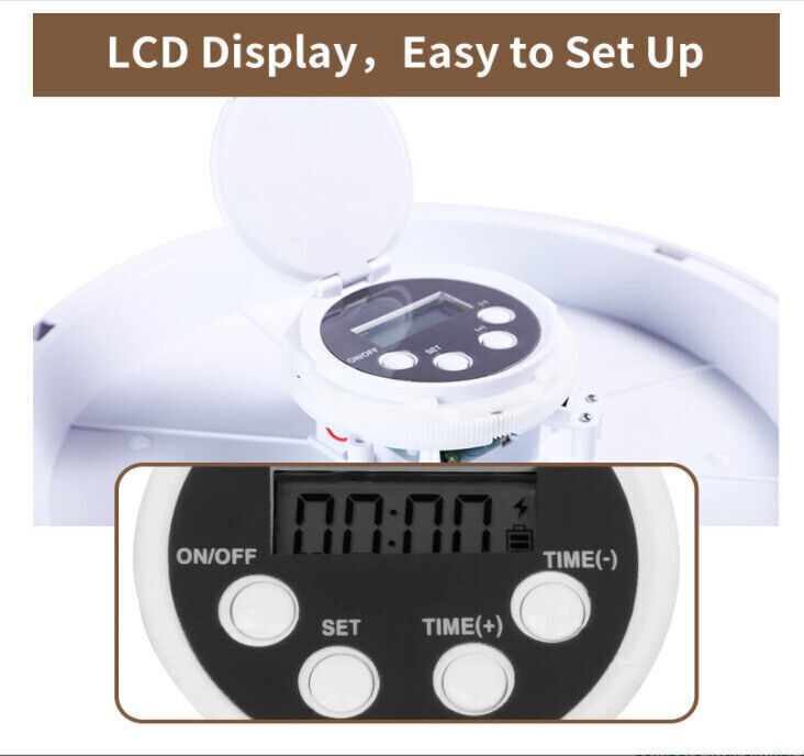 -Setting range: 1 minute to 24 hours. Time setting refers to the time setting of "feeding interval", not the time setting of a "specific time point" within a day. For example, if you set 8 hours (08:00), the lid of the product rotates every 8 hours and feeds the pet a meal.
