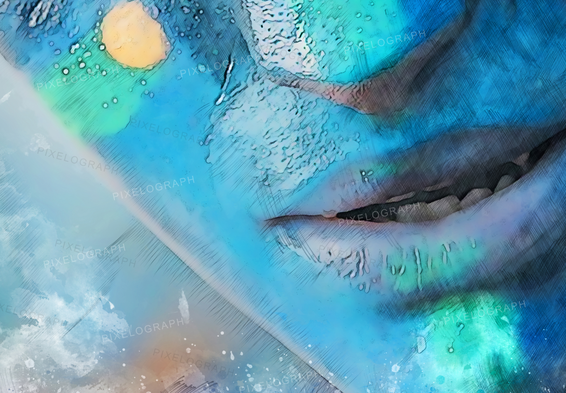 This is an archival art print of watercolor and ink painting / illustration of the Avatar (Neytiri) Sketch Art with watercolor splashes.