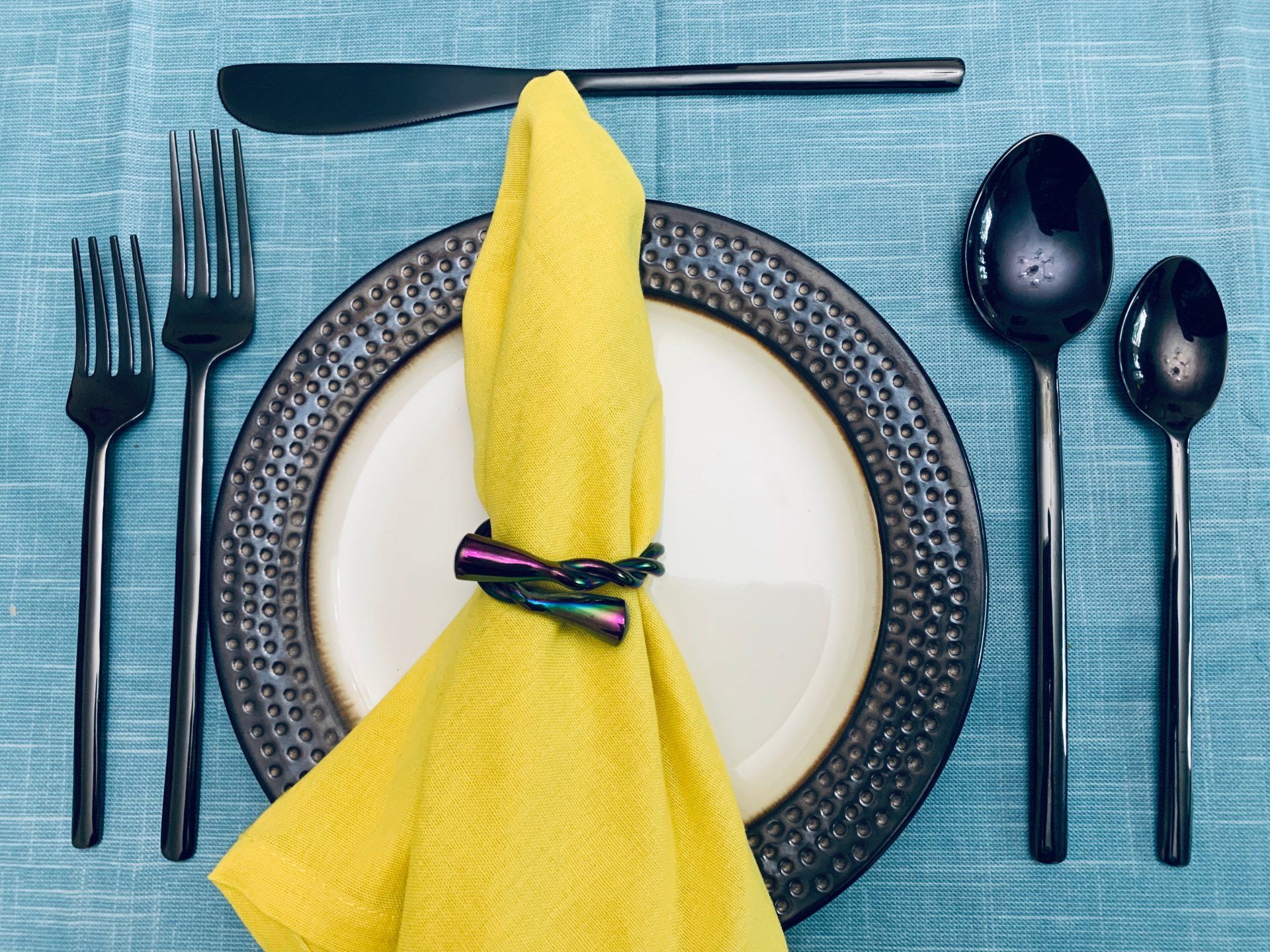 This 20-PC Stainless Steel Flatware Set Service for 4 provides a luxurious touch to any dinner table, thanks to its PVD Titanium Black coating. Each piece is handcrafted for a modern look and superior longevity; the set includes a 9" table knife, 6.5" teaspoon, 7.6" tablespoon, 6.2" salad, and 8.2" dinner fork, together accommodating a pleasant dinner experience for 4. Dishwasher Safe for convenient cleaning.