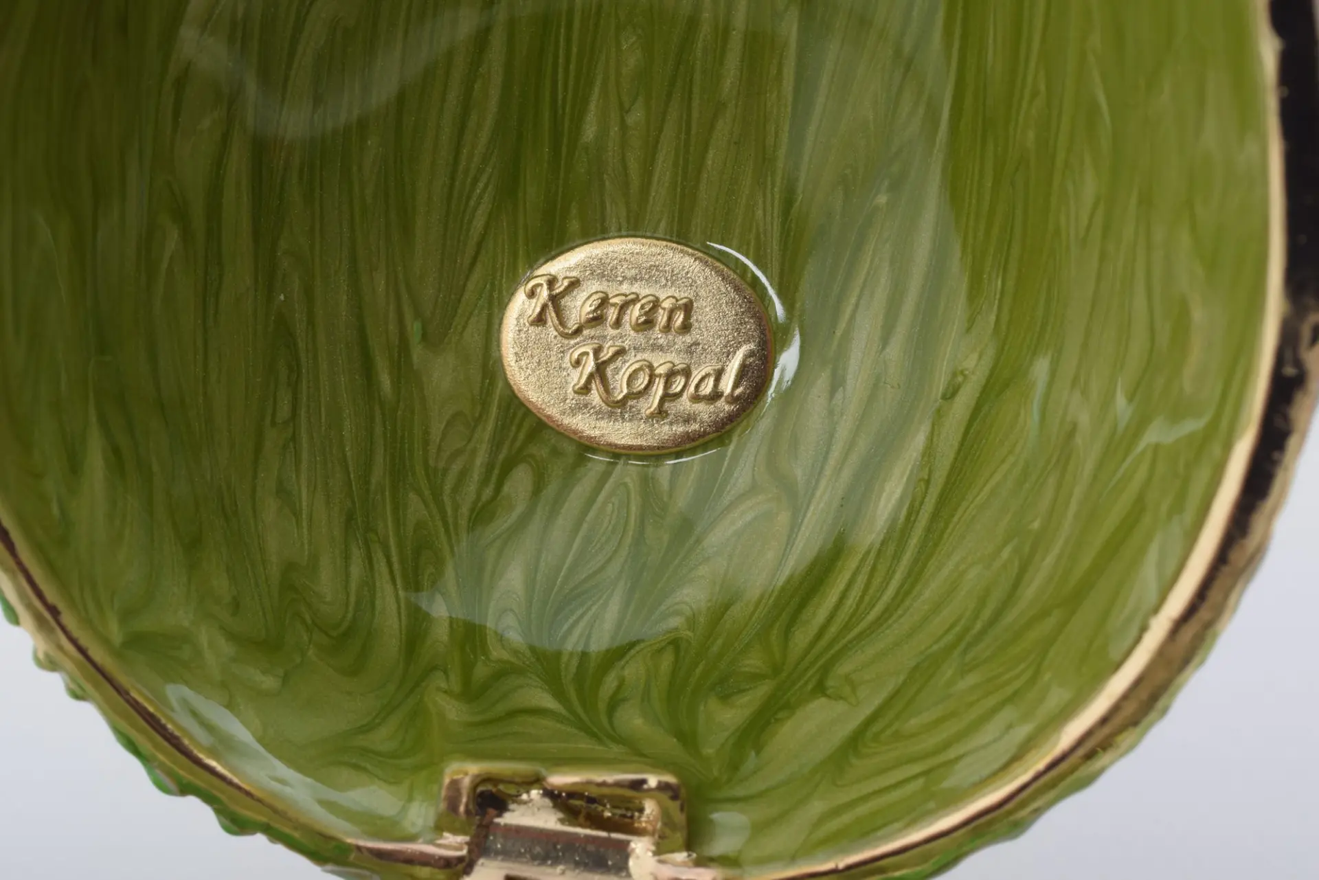 Enamel Painted Trinket Box Decorated with Austrian Crystals