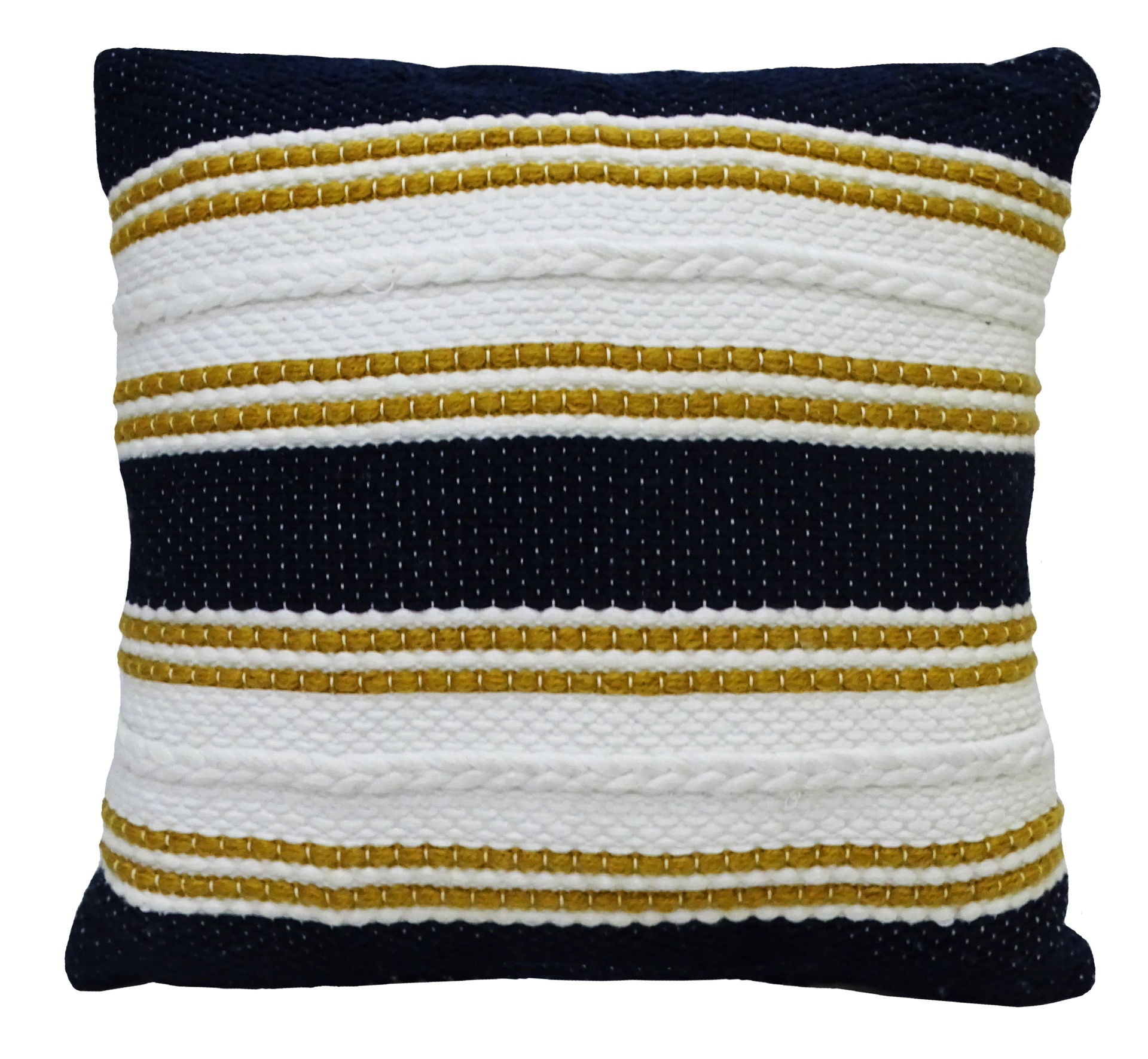 - 18x18 In handwoven outdoor indoor pillow with braid details 100% POLYESTER