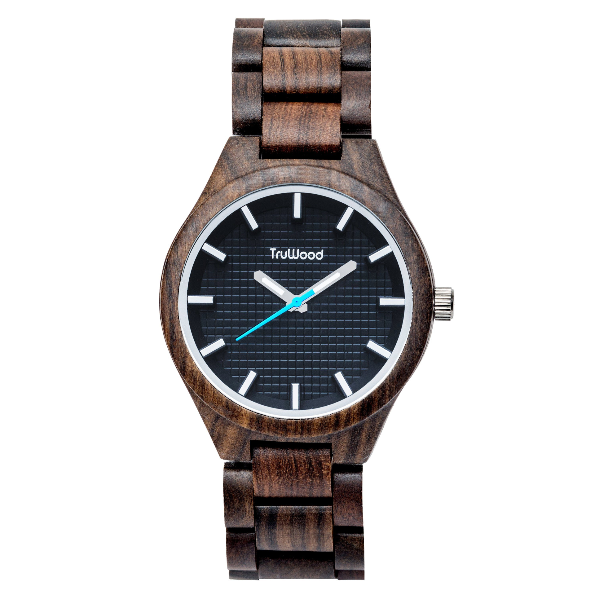 Everyday elegance has never been so accurate a description for any timepiece. The TruWood Capitan is handcrafted by expert watchmakers, built on excellence and never cutting corners. The black sandalwood case is polished to ensure a uniform grain and specially cured for water resistance in a stunning slim profile. A black square pattern dial housed in a sapphire coated crystal glass provides the perfect bridge between bold and simplicity. The lightweight dark wooden links complete the Capitan as your most comfortable watch ever.